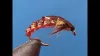 This is a smaller articulated pattern with big eyes and a smaller body, about the size of a size 2 Woolly Bugger.