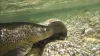 Brown trout caught on a barbless nymph in a river close to Reefton SI New Zealand. While removing the fly another older barbed nymph was removed. GoPro Action.