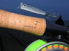 One of my favorite ways to see flies is by the water or in action. Not necessarily in the mouth of a fish or even in the water, but on the rod, on a reel, in the hand and with the water or nature as a suitably blurred background. These pictures can very often be shot in the spur of the moment when a nice scene suddenly shows itself. Light, a good looking fly, a nice background or whatever can inspire a picture.