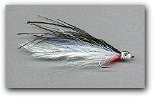 Tail: White bucktail with chartreuse Krystal Flash rolled into it. Tie the excess forward to the rear of the dumbbell eyes.