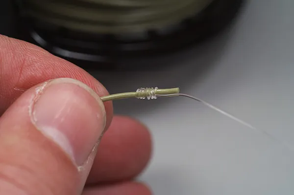 The knot is called the nailless nail knot, and if you click on the picture you can see instrictions on tying it.