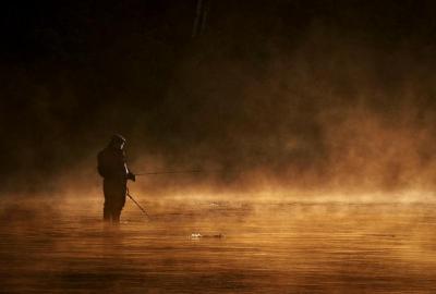 As morning turns to midday, the sun comes out from behind the hillside, and the river temperature increases from 16 to 18 degrees centigrade. It may be too warm for most salmon fishermen, but it's perfect for dry fly angler.