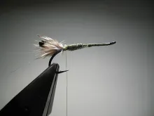 A fly tied for sea trout in the Baltic area. It proved to be efficient in other places too. Translucent and yet colored. Tie it in olive, rusty or tan and you can imitate any camouflaged mysis—and it will stand out from the crowd. Can be tied by seniors too...
