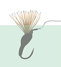 As for hooks, I personally use Mustad 3399s in a #16 or #18. The #16 is way larger than the flies that I'm matching, but seems to gives slightly better surface penetration, just from being a little chunkier. The #18 can be more effective on picky fish, but usually the #16 suffices. As a matter of taste I only dub the base of the deer hair and use the dubbed thread to bring the deer hair together into the desired cone shape. I finish by wrapping a few turns of bare thread toward the bend of the hook, and then back up using the matarelli. I don't even use varnish! You might be interested to know that the best day I ever had on this fly was on the Big Hole when my fly was reduced by countless fish to just the deer hair and a tiny bit of dubbing. The rest was a bare hook - it was absolutely deadly until it was finally gorged by a large whitefish! Inspired by that experience, I go sparse and tie down short of the bend. It may be the smaller profile that's presented, or the extra penetration from a bare hook, or it maybe the added sparkle from the hook itself. Whatever it is, I find that the 'less is more' approach works well.