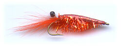 The flies' name indicates some kind of imitatory likeness to a shrimp, but not even the dumbest trout can possibly mistake that red or orange monster for something living. The flies' strength probably lies in provocation and visibility more than imitation.