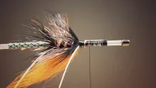 Danish Allan Nørskov Johansen ties a large, gaudy and semi-crazy fly with lots of hair, flash and rubber legs for stream fishing at night for sea run brown trout.