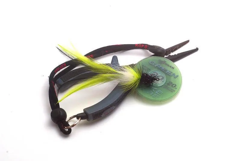 Sometimes you can strike a mood or make a point by combining items and flies - here a pike fly, the wire trace and the tool. Shot in a light tent with a single flash and post processed in Photoshop