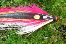 The story behind the origination of the Grey Ghost is well known. Carrie, the wife of Maine Guide Wallace Stevens, took a break from her camp chores and tied a streamer which would resemble a small baitfish. She tied a bunch of white bucktail under the hook, and two olive-grey saddle hackles on top of the hook, then took her creation to the Upper Dam pool, where she promptly hooked a 6 lb, 13 oz brook trout. She entered this fish into a contest which was being held by Field And Stream, winning second prize, and receiving a flood or orders for her new pattern. She found herself in the flytying business.