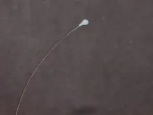 4. Melt the nylon. Mix the epoxy with a drop or two of hobby paint or varnish. Apply to the eyes and let them dry on a fly dryer using painters tape or even better a rubber band to hold the eyes.